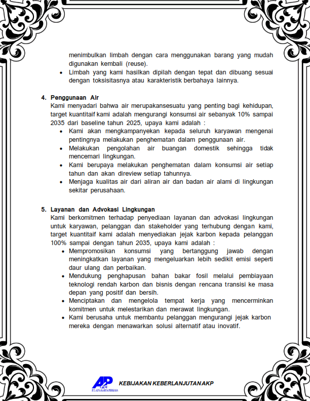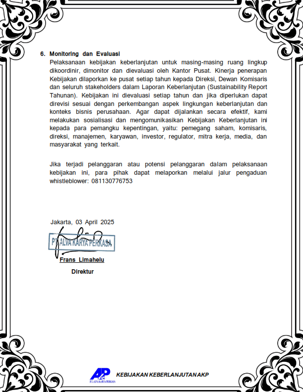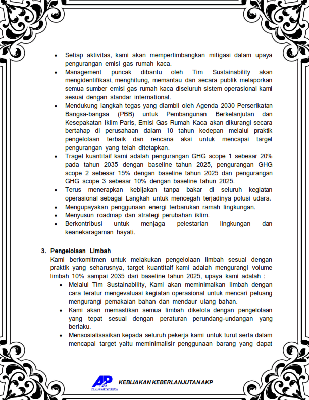 Through this policy, we are committed to implementing the concept of sustainability in every aspect of our business and operations. As part of the global effort to reduce greenhouse gas emissions, we are determined to support government programs and international initiatives through best management practices.